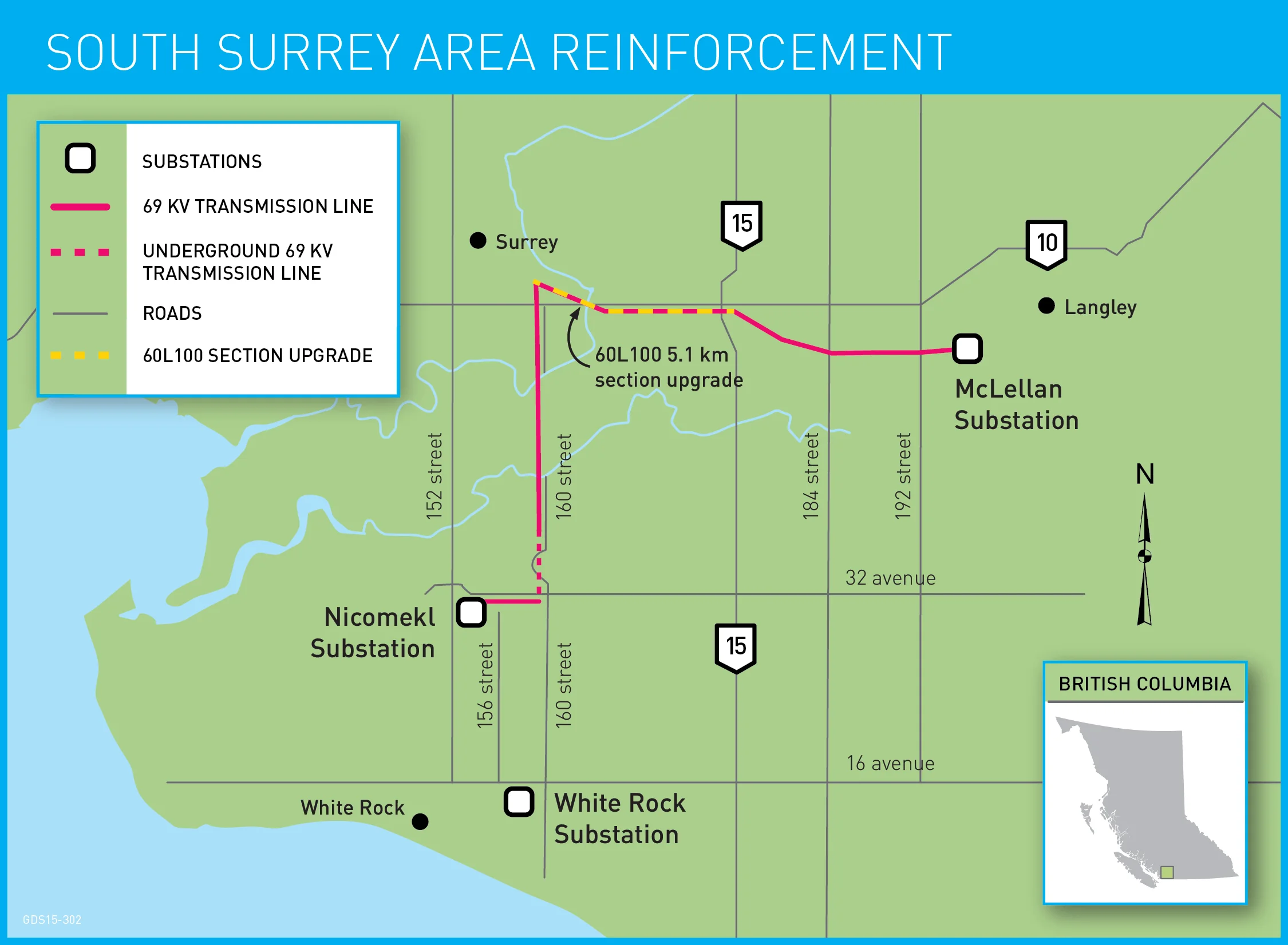 One of the biggest infrastructure shakeups, BC Hydro intends to upgrade the transmission power line bringing electricity to a growing South Surrey population alongside upgrading multiple substations to continue powering homes and businesses. The upgrades are expected to bring South Surrey communities reliable electricity for five to ten years, help increase area capacity and most importantly, help bring about further economic development in the area. The project is expected to start in early 2017 to be completed by Spring 2018.